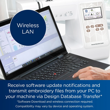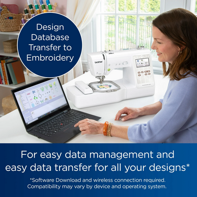 - Wireless Embroidery Machine – Transfer designs instantly without messy cables.
