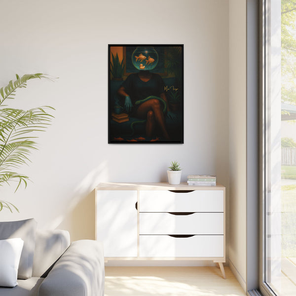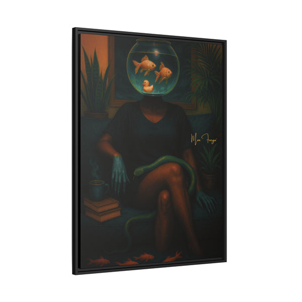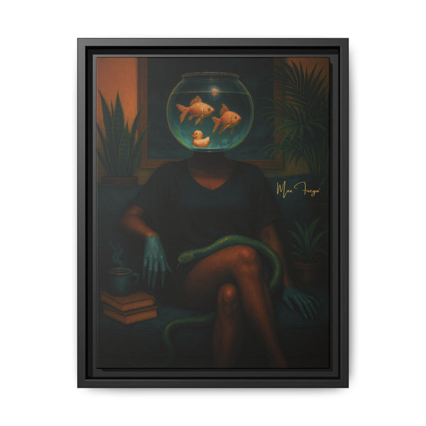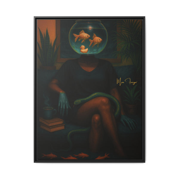 cosmic noir wall art • surreal portrait canvas • turquoise glow artwork • psychological symbolism art • Beverly Hills edition print • Max Fuega signature canvas • moody surreal home decor • introspective character artwork • limited edition framed canvas • 54 Mondays project art