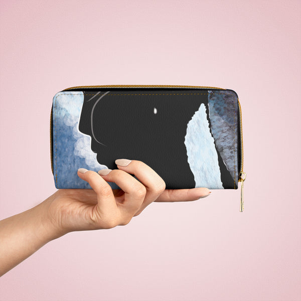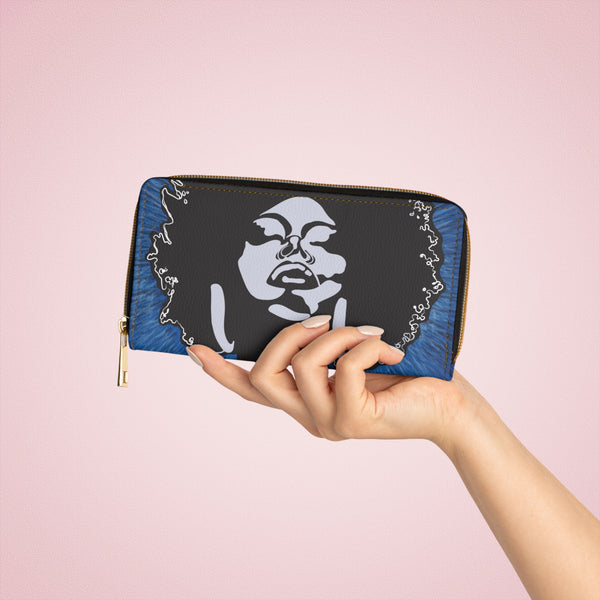 vegan leather zipper wallet | art zipper wallet | women zipper wallet | portrait art wallet | vegan leather wallet | artist wallet | long zipper wallet | everyday wallet | Buy Martian Merch | Ribbie’s Creations | organic soul art | dreaded splendor art | art accessory wallet | gift wallet for her | modern wallet design
