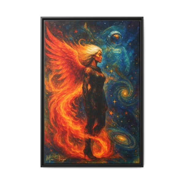 54 Mondays™ Project | Heat and Hollow – Beverly Hills Edition | Fire-Wing Warrior & Astronaut Cosmic Noir Portrait | Limited Gold Max Fuega™ Signature | FSC-Certified Framed Matte Canvas