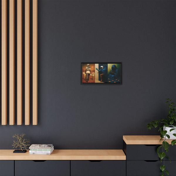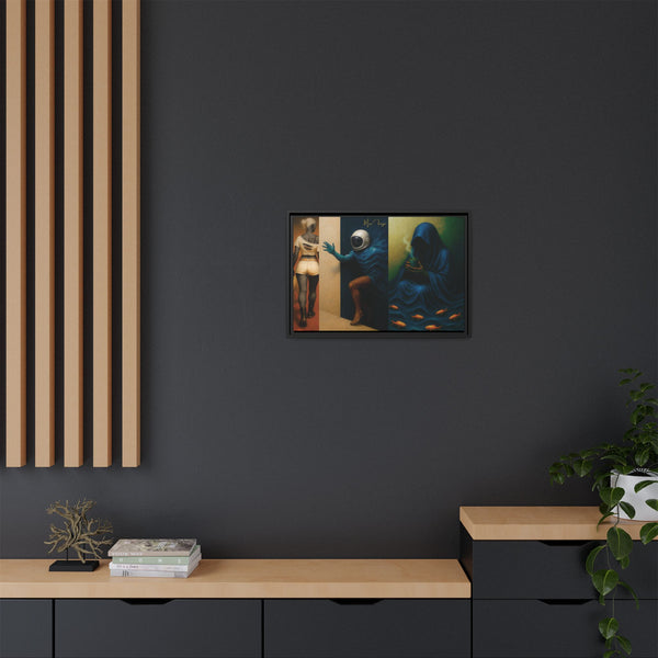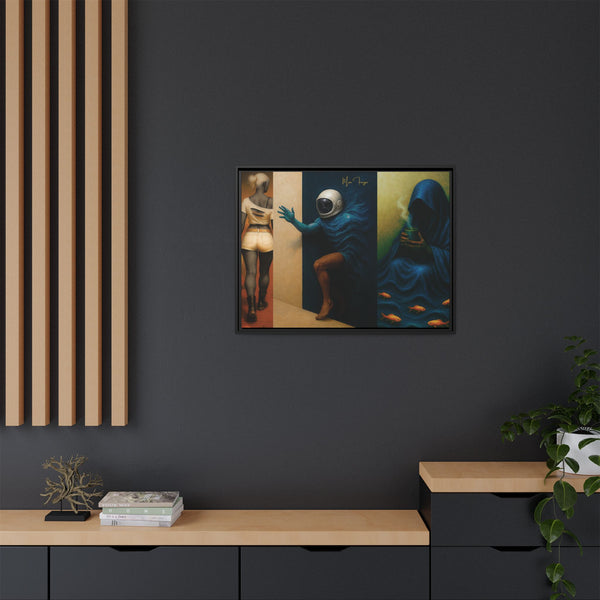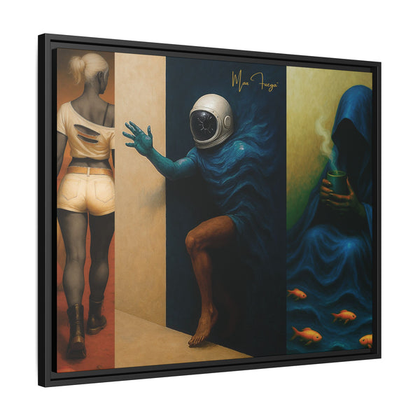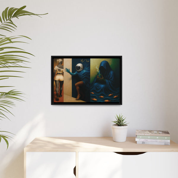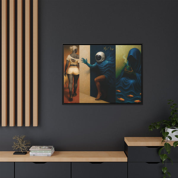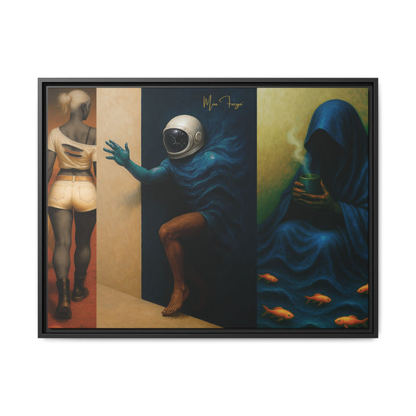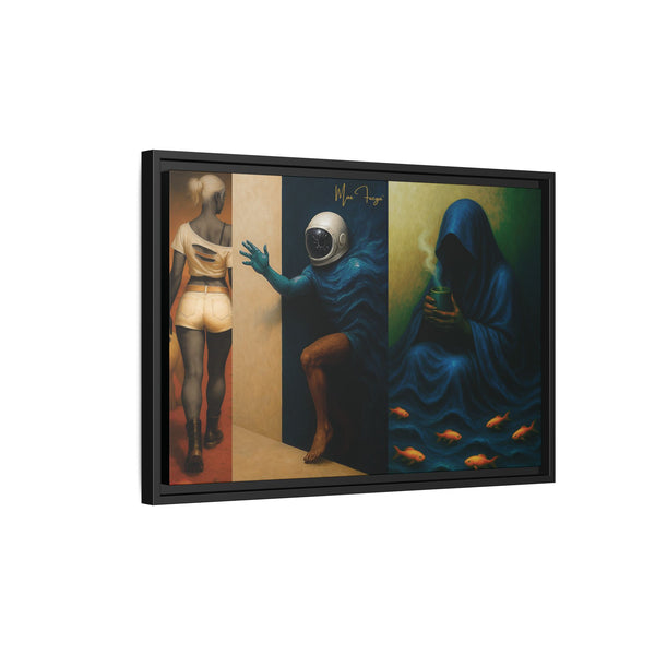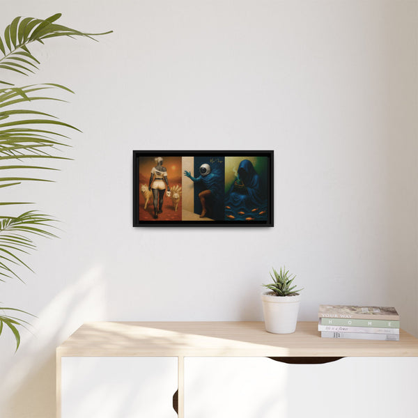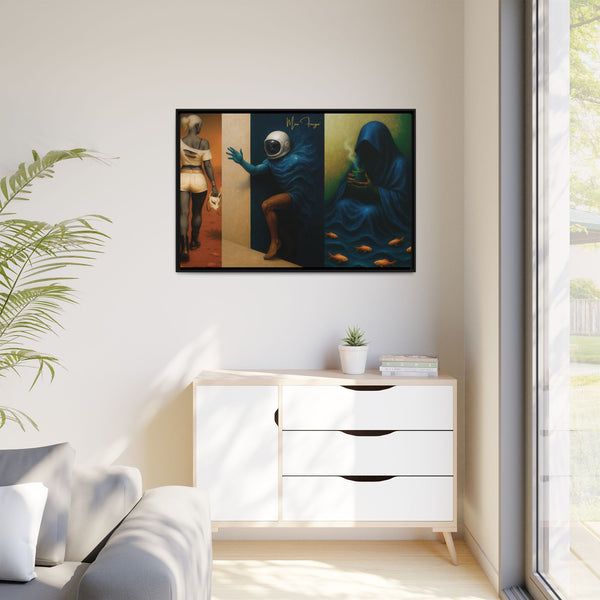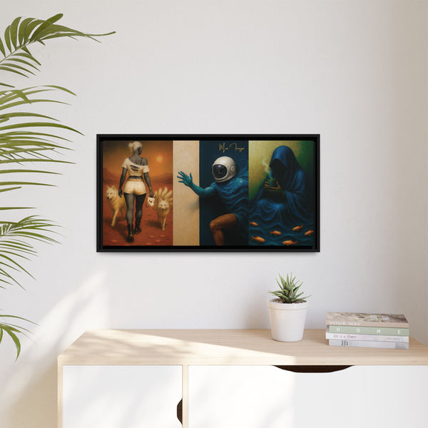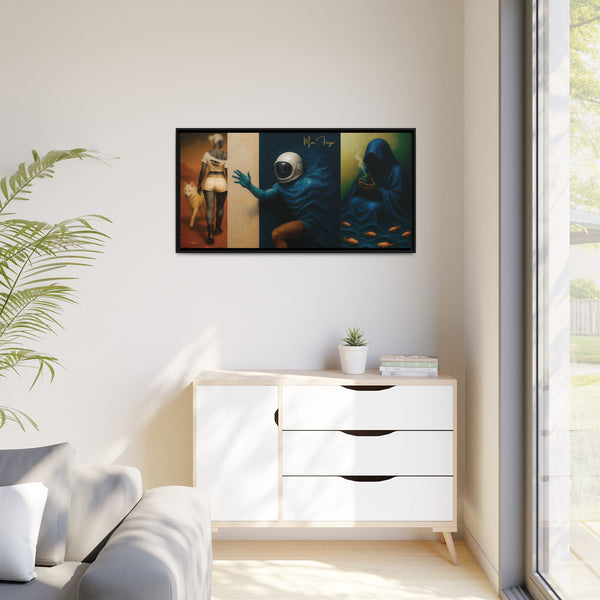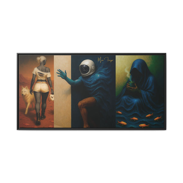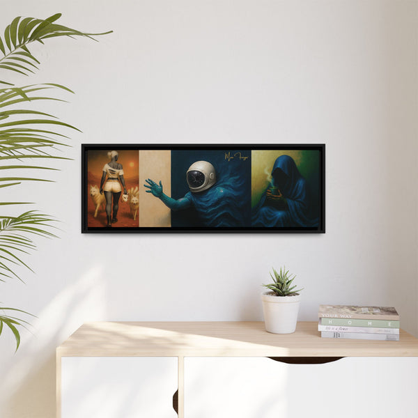 LaReina art • AstroHollow art • Stormtide Serpentine • cosmic noir canvas • panoramic wall art • surreal triptych • Mars landscape art • void realm art • hooded figure art • dimensional rift artwork • Max Fuega Signature • framed matte canvas • Beverly Hills Edition • 54 Mondays Project