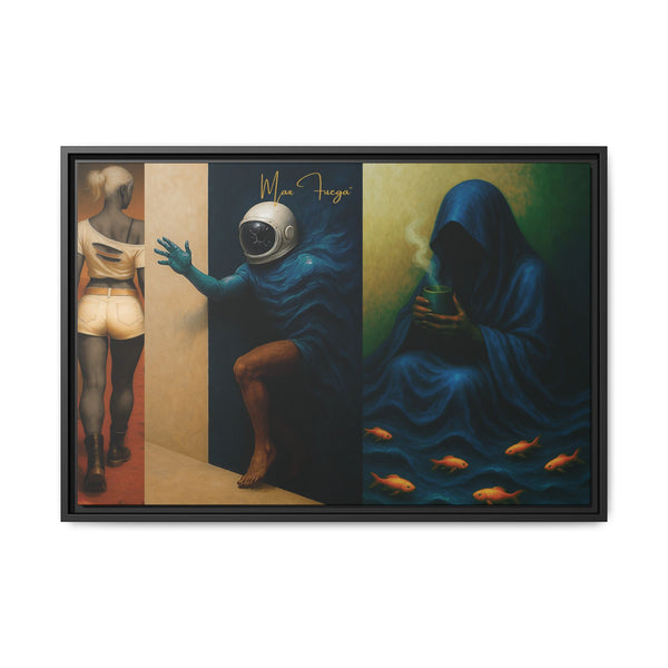 Rendered in the signature cosmic-noir palette of the Max Fuega™ universe, this wide-format framed matte canvas carries the unmistakable Limited Gold Max Fuega™ Signature, marking it as an authenticated drop inside the 54 Mondays™ collection.