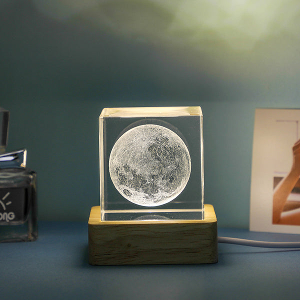 Each cube features a precision 3D-engraved design illuminated by a warm LED base — making it an eye-catching accent for your nightstand, bookshelf, or office desk. The gentle ambient light enhances your evening mood without overpowering your space.
