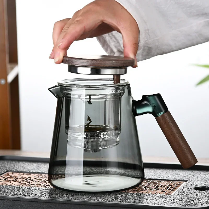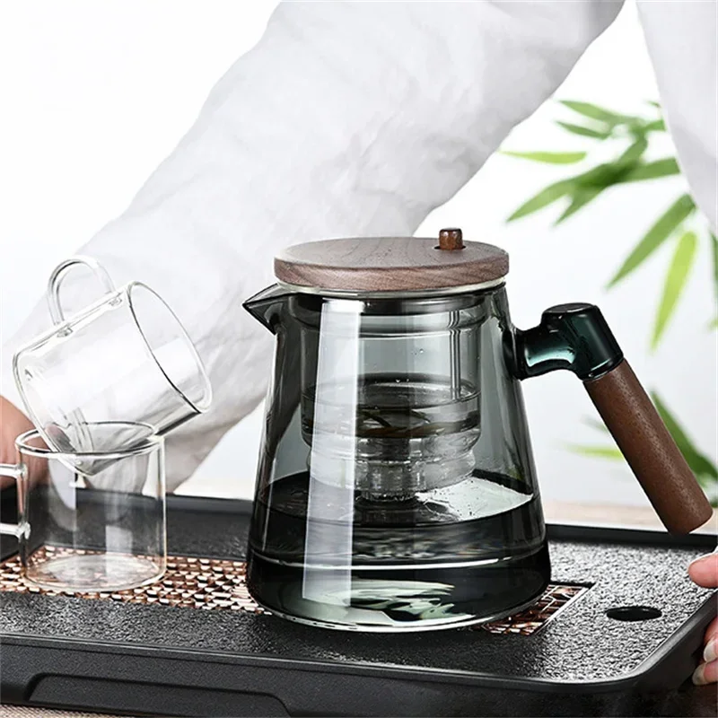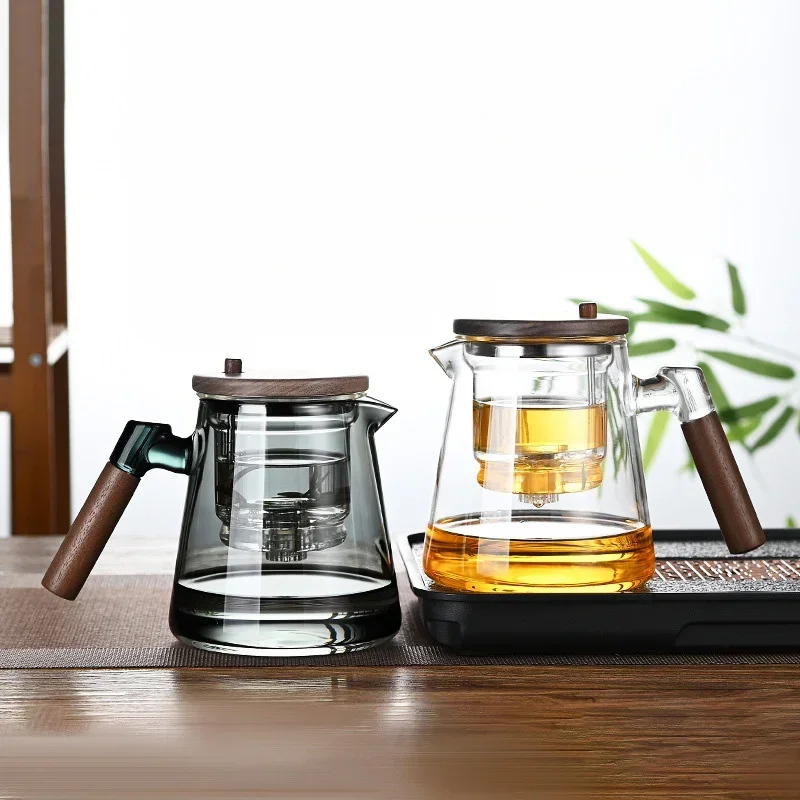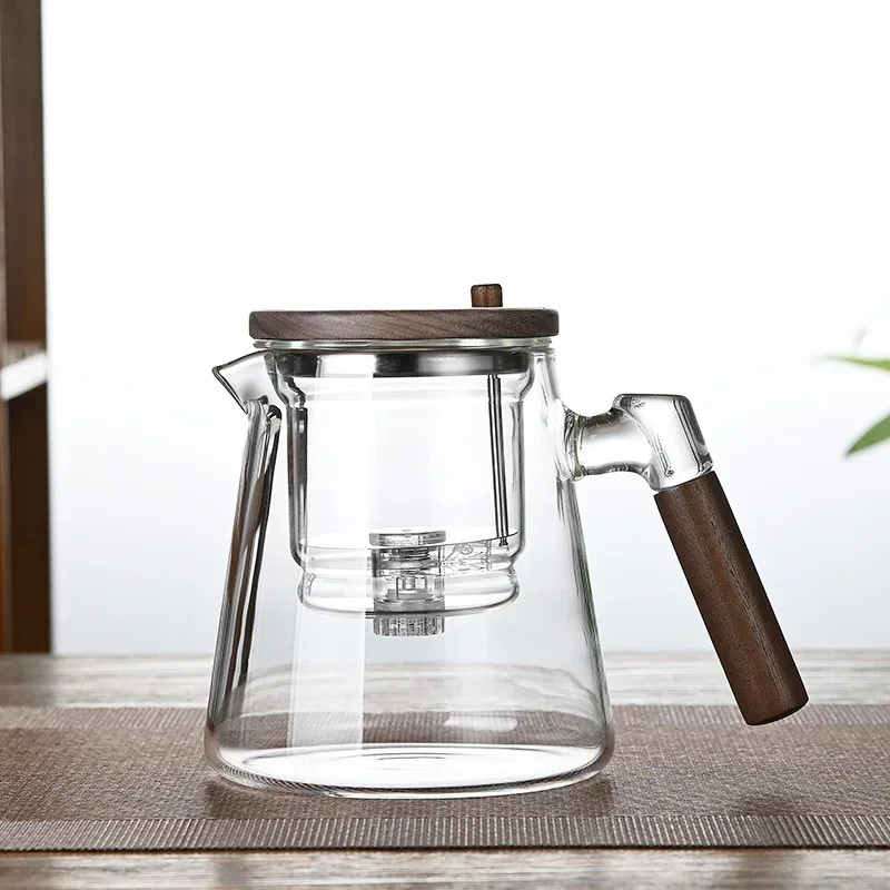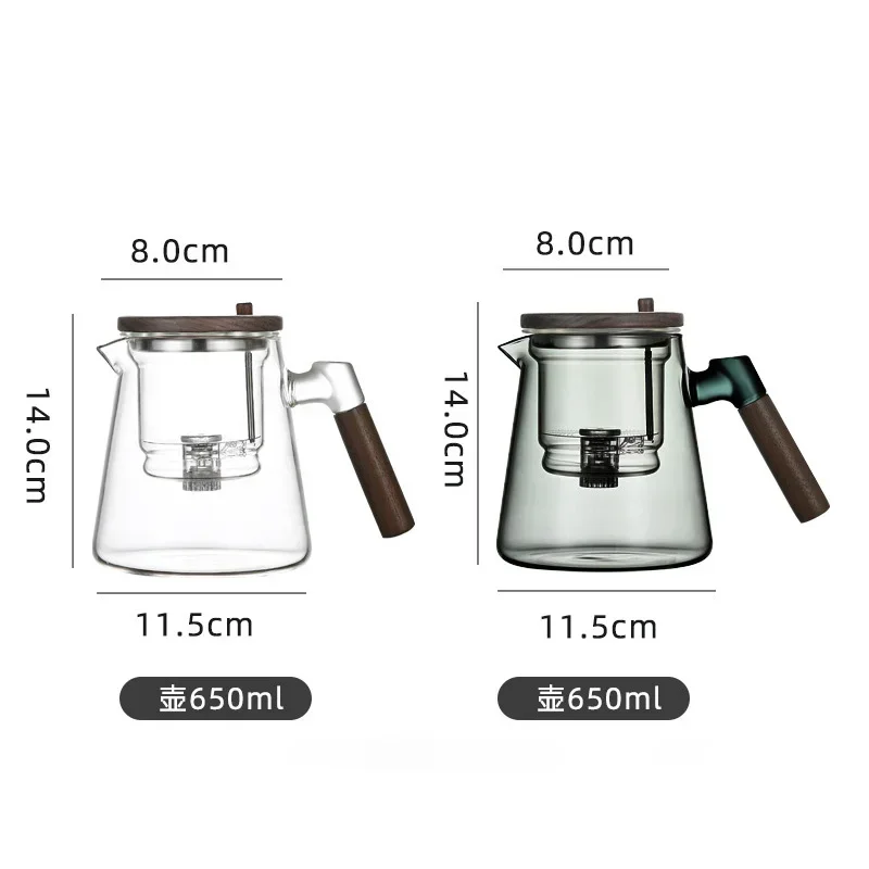 Experience the elegance and convenience of the One Click Tea Separation Filtration Glass Teapot. Crafted from high-borosilicate glass, this teapot is designed to withstand temperature changes from -4°F to 266°F, making it perfect for brewing tea in any environment. The wood handle offers a comfortable grip, while the built-in infuser ensures a seamless tea separation process with just one click. With a 650 mL capacity, this teapot is ideal for both personal use and serving guests.